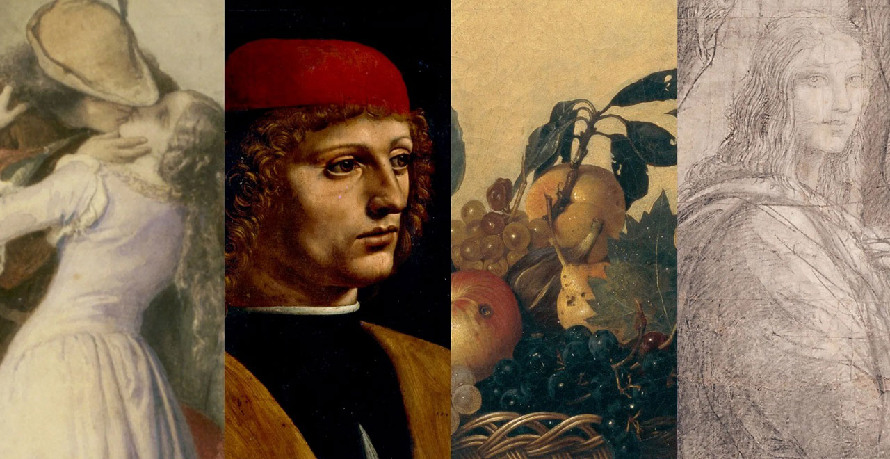 Si tratta di un itinerario unico attraverso Il Musico di Leonardo, la Canestra di frutta di Caravaggio, il cartone preparatorio per la Scuola di Atene di Raffaello, l’Adorazione dei Magi di Tiziano, la Madonna del Padiglione di Botticelli e gli splendidi vasi di fiori di Jan Brueghel e tanti altri lavori rinascimentali, del Seicento e del Settecento lombardi e un notevole nucleo di autori ottocenteschi e di primo Novecento. Senza trascurare peraltro i pittori fiamminghi, autentica passione del cardinale Federigo, fondatore della Biblioteca, quindi della Pinacoteca.