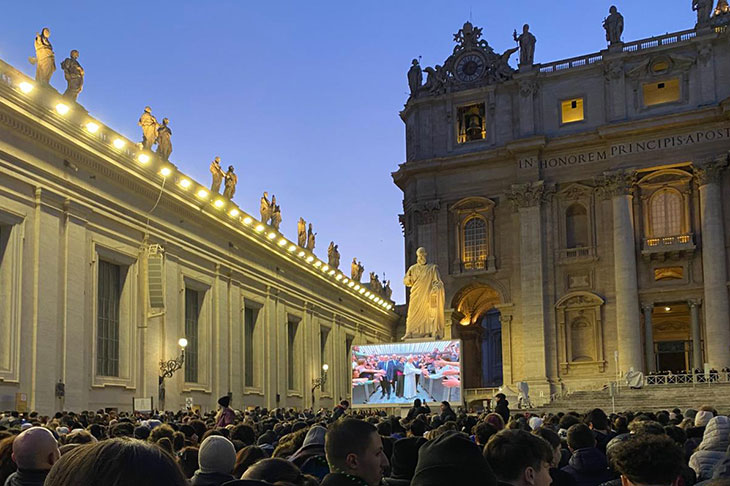 Fra loro oltre cento studentesse e studenti del campus di Roma dell’Università Cattolica del Sacro Cuore, accompagnati da assistenti pastorali e responsabili dei Collegi, accorsi in Piazza San Pietro per vivere ancora una volta, dopo il grande Giubileo dei Giovani dell’estate scorsa, un intenso momento di gioia e di comunità.