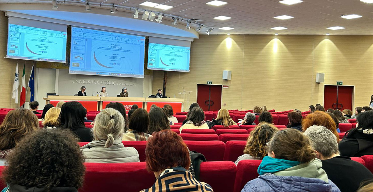 Una sala gremita di insegnanti di scuola primaria e dell'infanzia, pedagogiste, qualche dirigente scolastica: il Centro Congressi "G. Mazzocchi" ha ospitato, presso il campus di Piacenza, un pubblico numeroso e attento per il seminario "Educare con cervello", organizzato dalla Facoltà di Scienze della Formazione e dal Dipartimento di Pedagogia dell'Università Cattolica, con il supporto del CARE-Centro Studi Contesti, Affetti e Relazioni Educative.