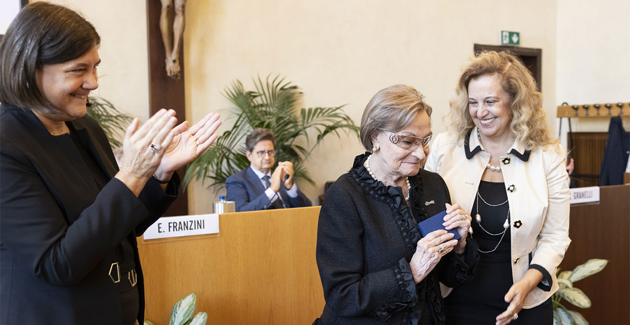 «È stato studioso fine e rigoroso, docente appassionato e mai banale, professionista acuto e apprezzato, rettore equilibrato e brillante». Con queste parole Elena Beccalli, rettore dell’Università Cattolica del Sacro Cuore, ha introdotto venerdì 10 ottobre il convegno in ricordo del professor Franco Anelli. Ordinario di Diritto privato nella Facoltà di Giurisprudenza, dove ha svolto una lunga e stimata attività accademica, dal 2013 al 2024 il professor Anelli ha ricoperto il ruolo di rettore dell’Ateneo. Un’iniziativa partecipata e densa di commozione che ha avuto uno dei suoi momenti più toccanti nella consegna della medaglia commemorativa - realizzata dalla Conferenza dei rettori delle università italiane (Crui) - alla signora Lucia Ambroggi, mamma di Franco Anelli, da parte della professoressa Giovanna Iannantuoni, già presidente Crui.
