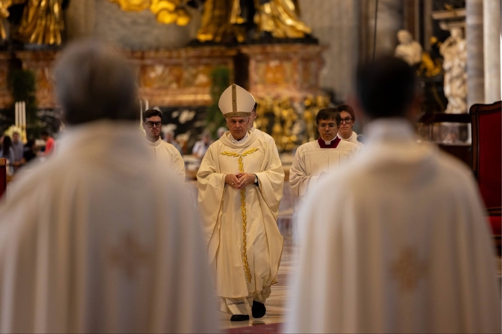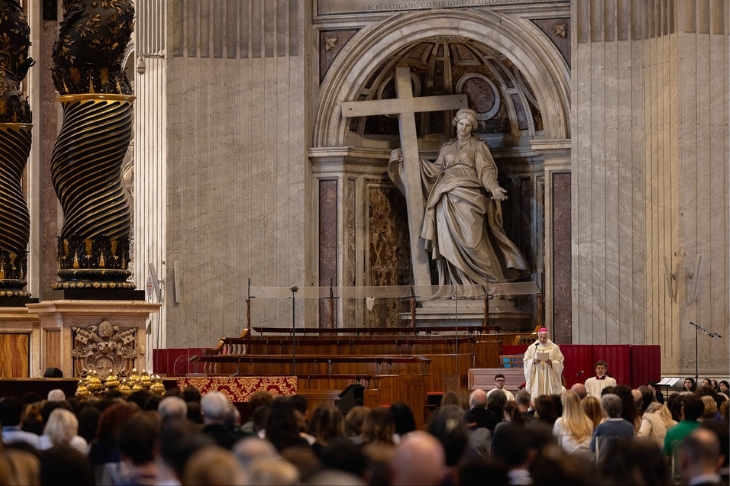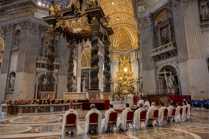 Dopo l’Udienza Papale la comunità universitaria si è ritrovata all’Altare della Confessione, in Basilica, per la concelebrazione della Santa Messa, presieduta da S. E. Mons. Claudio Giuliodori, Assistente Ecclesiastico generale dell’Università Cattolica, e animata dal Coro delle studentesse e degli studenti della sede di Roma: «Quello che stiamo compiendo è un gesto molto significativo per ciascuno di noi e per la comunità dell’Università Cattolica del Sacro Cuore. – ha detto il Vescovo nell’omelia - Abbiamo accolto l’invito, formulato nella Bolla di indizione, a vivere il Giubileo come occasione di conversione e di rinnovamento sia a livello personale sia come comunità accademica. Con questo Spirito ci siamo messi anche noi in cammino come pellegrini di speranza e abbiamo attraversato la Porta Santa nella consapevolezza che c’è «bisogno anche di momenti forti per nutrire e irrobustire la speranza, insostituibile compagna che fa intravedere la meta: l’incontro con il Signore Gesù» (Spes non confundit, n. 5)».