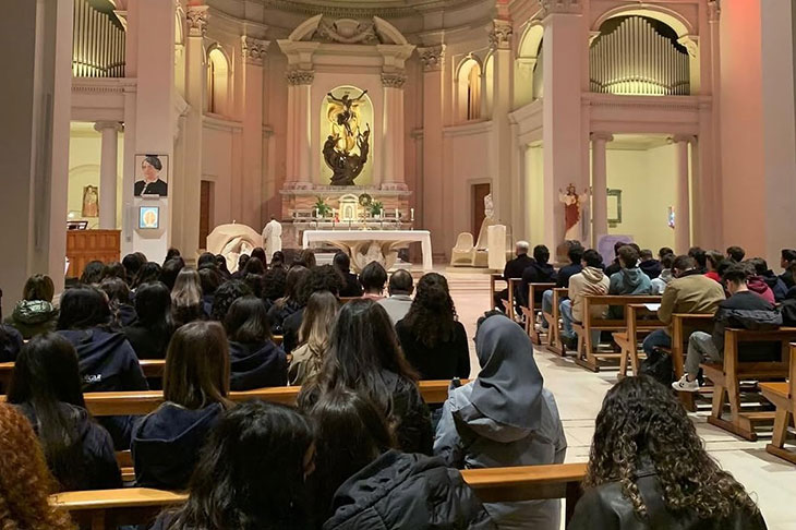 Il 17 marzo tutte le collegiali e i collegiali del campus si sono riuniti in preghiera nell’Adorazione Eucaristica serale, in un clima di grande riflessione e silenzio, in una Chiesa centrale gremita di partecipazione e di intensa vicinanza fra tutti.