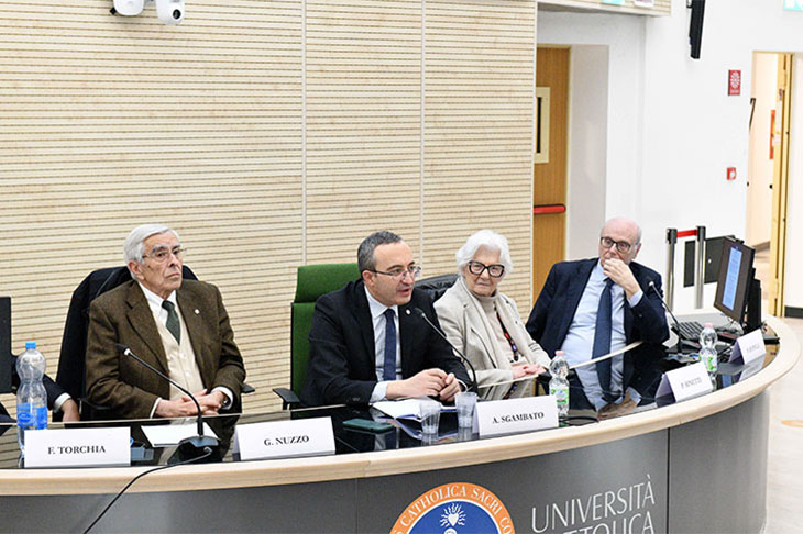 Tanti i ricordi e gli aneddoti personali che i relatori hanno condiviso con i giovani studenti, dai viaggi di ritorno ai luoghi degli affetti e di famiglia, alle ore creative in mezzo a lunghe giornate di studio e lavoro fino all’impegno sociopolitico e scientifico dell’età adulta i cui semi sono stati piantati negli anni della giovinezza: «Passione: questa la parola chiave dell’incontro ed è questa la stessa emozione che porta quattro illustri medici del panorama nazionale a confrontarsi con noi studenti – ha commentato lo studente del corso di laurea in Medicina e chirurgia Pietro Schirano -. Dalle “fughe” a Bologna del professor Nuzzo, alle poesie del professor Zeppilli passando per le conquiste politiche della professoressa Binetti fino ad arrivare “in orbita” con il dottor Torchia. Due ore confrontando le varie esperienze universitarie evidenziando l’importanza degli incontri con colleghi diventati, col tempo, amici fedeli e maestri che, con i loro consigli, hanno illuminato il proprio percorso. Due ore di puro amore, nel raccontare quello che è il lavoro più bello del mondo, dove le soddisfazioni hanno più forme, passando dal sorriso sul volto di un paziente alla curiosità di uno studente durante le lezioni. Per chi espone le proprie preoccupazioni e parla di “tunnel senza luce” il professor Zeppilli ha tenuto a precisare, con l’ironia che lo contraddistingue, che “nel tunnel c’è sempre l’uscita, anche nel traforo del Monte Bianco (la galleria più lunga d’Italia)”. In conclusione, quello che mi porto dentro da questo incontro è che qualsiasi cosa si faccia nella vita gli ingredienti per ottenere risultati sono passione, curiosità e ascolto. Ringrazio i rappresentanti degli studenti e l’Università per questa preziosa opportunità».