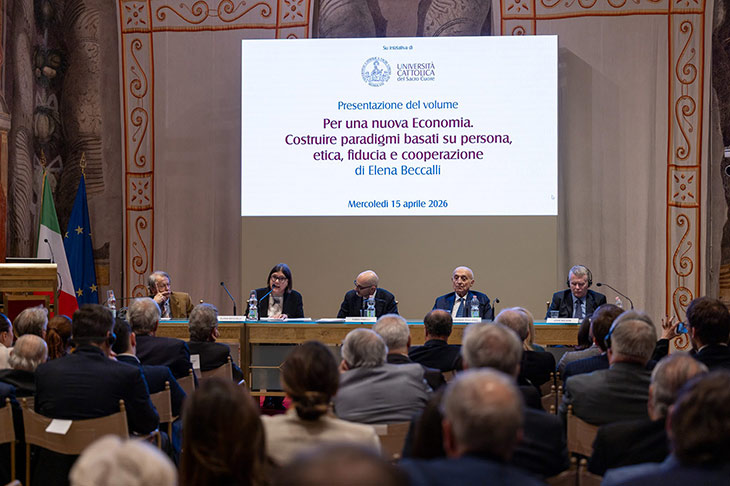 Una visione che rimanda direttamente al nuovo paradigma economico evocato dal Rettore Elena Beccalli. Dal suo punto di vista, tre sono i nodi critici del modello dominante: gli errori comuni della concezione neoclassica di carattere utilitaristico, il disincanto della globalizzazione e il silenzioso passaggio dal paradigma della competizione a quello del conflitto e l’importanza del binomio competitività e solidarietà. Secondo il Rettore, «per funzionare adeguatamente, economia e finanza necessitano di un’etica incentrata sulla persona e sulla sua natura relazionale», ricordando che «disuguaglianze e povertà non possono essere considerate un’esternalità negativa di un modello che funziona». Non si tratta solo di categorie economiche, ma di diritti umani e sociali fondamentali. Amartya Sen, già trent’anni fa, invitava a considerare accanto al reddito anche la lunghezza della vita, la salute, la libertà, la casa e l’istruzione. Bisogna pertanto passare, dall’economia della predazione all’economia della cura. Competitività e solidarietà, infatti, non sono opposte, ma possono essere in osmosi. Un tema cruciale per l’Unione europea, oggi chiamata a riconquistare una posizione competitiva a livello globale. «Il recupero di competitività - ha chiarito la professoressa Beccalli - è un pilastro per politiche europee solide. Per ridare slancio all’Europa, essa va posta in equilibrio con la solidarietà». Una prospettiva che trova un punto di riferimento nella celebre affermazione di Alcide De Gasperi: «Né capitalismo né comunismo, ma solidarismo». In altri termini, un modello in cui giustizia sociale e bene comune si fondano sull’idea di solidarietà. Perché, ha concluso il Rettore Beccalli citando la laureata dell’Ateneo Tina Anselmi, «la politica è organizzare la speranza».
