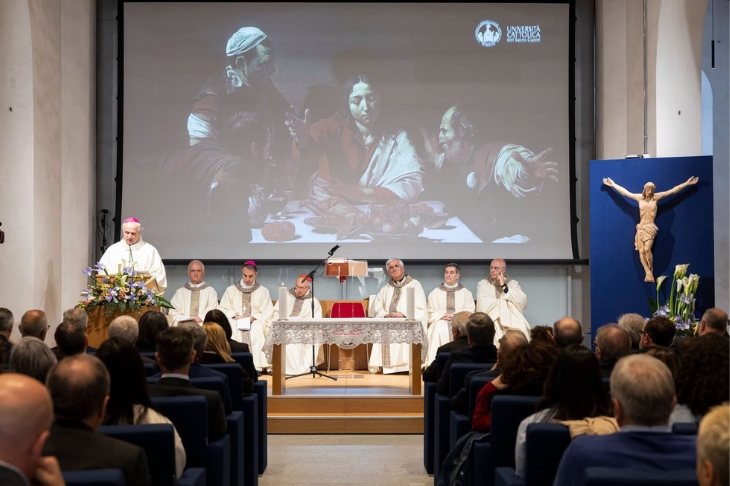La giornata si è chiusa nel segno della fede con la Santa Messa celebrata da Mons. Claudio Giuliodori, che ha offerto alla comunità universitaria cremonese il momento spirituale proprio della Giornata dell'Università Cattolica. Nella sua omelia, Mons. Giuliodori ha ricordato che il Piano strategico racconta «quello che siamo e che vogliamo essere nei prossimi anni delineando obiettivi importanti e prestigiosi» e parla, nel contempo, «di uomini e donne, studenti, professori e personale tecnico-amministrativo appassionati di un’esperienza del sapere non fine a se stessa, che vogliono crescere insieme come comunità per offrire alle nuove generazioni i migliori strumenti per essere a servizio dell’umanità. Non i migliori del mondo, ma i migliori per il mondo». Un'occasione per ricordare che il cammino dell'Ateneo affonda le radici in un'ispirazione che precede ogni piano strategico e accompagna ogni passo verso il futuro.