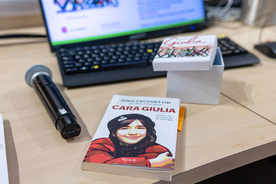 «Mi è difficile parlare di Giulia perché devo scavare nella memoria – ha raccontato il papà, Gino Cecchettin, presente all’incontro. Molti stereotipi forse dicono che non dovrei fare quello che faccio ma è un modo per tenerla in vita. Quando vedo dei mocassini su una ragazza uguali a quelli che aveva Giulia o una Cinquecento di quelle antiche che lei voleva, faccio fatica a trattenere le lacrime. Vivo la vita così per farla rivivere. La Fondazione Cecchettin è nata dal dolore che provo, nella speranza di farlo evitare ad altre persone. L’ho fatto ispirandomi a Giulia che era altruista per natura. Vedeva il bello in ogni dove». Gino ha scelto di trasformare un dolore coì grande in impegno pubblico perché «quello che è successo a mia figlia mi ha fatto capire quanto soffrano le persone».