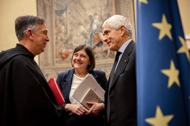 L’incontro si è snodato a partire dall’opera del Santo Padre fra le gravose sfide attuali: «In un mondo attraversato da oltre cinquanta conflitti – ha detto Casini -. Leone ha raccolto l’eredità di Francesco e ha rilanciato con forza l’appello alla pace nella convinzione che la Chiesa esiste per offrire al mondo un orizzonte di riconciliazione», e attraverso molti ricordi personali e significativi con le parole di Padre Farrell che ha sottolineato la ricca esperienza pastorale di Leone XIV «come missionario, priore provinciale, priore generale, vescovo, cardinale e ora Papa» che «ci permette di vedere come Dio ha operato in lui e attraverso di lui».