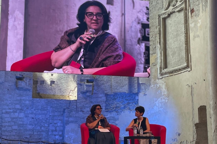 Allo stesso tempo, si ha l’occasione unica di poter assistere “da vicino” a riflessioni di personaggi fino a quel momento percepiti come “lontani” e in un certo senso irraggiungibili. Tra questi, Roberto Saviano, che nella prima serata del sabato ha intrattenuto l’Auditorium San Francesco con un monologo dal titolo evocativo: Resistere. Tra il pubblico, c’era anche la studentessa del Master Ilenia Cavaliere: «Il richiamo di Roberto Saviano alla resistenza non è stato solo una riflessione teorica, ma un invito a impegnarci quotidianamente per fare fronte a un sistema che tende a premiare la superficialità e l’immediatezza. Ci siamo sentiti coinvolti, come se quelle parole stessero parlando direttamente a noi, ai giornalisti che, come lui, cercano di navigare un mondo che è cambiato radicalmente».