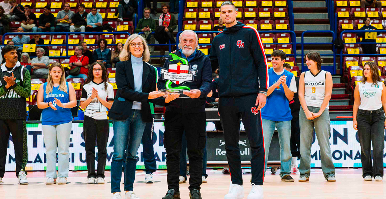 Dopo il grande successo della scorsa edizione, la 24esima edizione dei Campionati Milanesi Universitari si apre addirittura con una partita di Eurolega. Quella tra Olimpia Milano e Paris Basketball, vinta dai padroni di casa 86 a 77, giovedì 30 ottobre all’Unipol Forum di Assago. E regala già una novità assoluta. È il premio “Stella CMU”, assegnato dal CUS Milano alle squadre che hanno conquistato almeno 10 titoli in una singola disciplina. A vincere la prima stella nel basket maschile è l’Università Cattolica del Sacro Cuore e a riceverla ufficialmente non poteva che essere Maurizio Mondoni, anima del basket Made in Cattolica a fianco di intere generazioni di studenti.