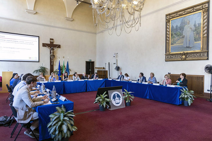 Ieri pomeriggio, martedì 16 settembre, dopo l’incontro con le autorità locali e regionali, la delegazione europea guidata da Irene Tinagli, Presidente della Commissione HOUS, si è riunita nell’aula Pio XI dell’Ateneo di largo Gemelli per dialogare con i rappresentanti delle università milanesi, della Conferenza Italiana dei Collegi Universitari di Merito e del CUN. «La delegazione della commissione casa, che ho l’onore di presiedere, ha scelto Milano perché è una città che negli anni ha visto crescere la propria attrattività e quindi la pressione dell’aumento turistico, del numero di studenti, della popolazione e degli investimenti - tutti fattori che hanno fatto salire i prezzi e reso più difficile l’accessibilità alla casa», ha continuato la Presidente Tinagli. «Allo stesso tempo vediamo a Milano una grande consapevolezza sia da parte delle autorità locali che da parte di tutte le parti sociali, associazioni, imprese, università, fondazioni, che stanno cercando di attivare progetti e collaborazioni per poter dare risposte. Questo rende Milano un caso molto interessante di città che sta cercando di affrontare un problema comune a tutte le grandi metropoli e città europee. Durante la missione abbiamo avuto modo di incontrare tutti questi attori istituzionali e sociali e ciascuno di loro ci ha dato la possibilità di approfondire aspetti rilevanti e diversi del problema», ha osservato Irene Tinagli.