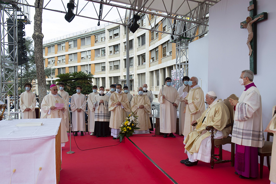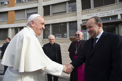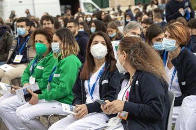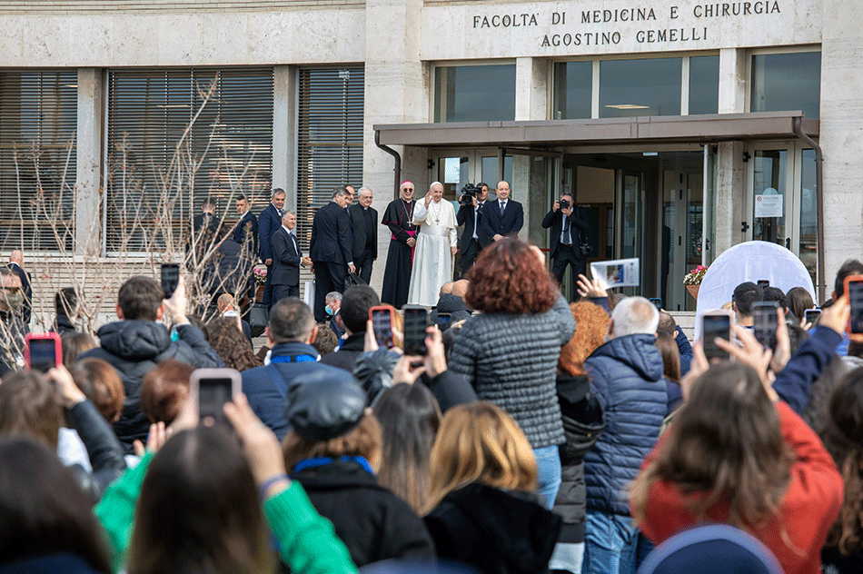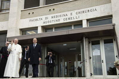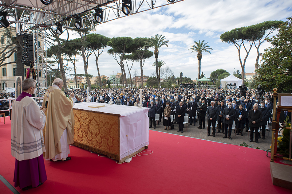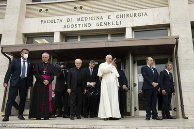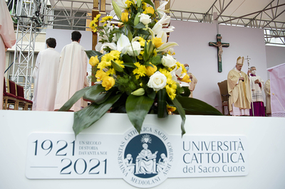 Ricordo, passione, conforto: Papa Francesco sceglie tre parole per la sua omelia durante la celebrazione eucaristica presieduta in occasione del 60° anniversario dell'inaugurazione della facoltà di Medicina e chirurgia dell'Università Cattolica. Davanti al campus di Roma. Oltre 2mila tra docenti, studenti, personale amministrativo, medici e operatori sanitari della sede di Roma della Cattolica e della Fondazione Policlinico Universitario Agostino Gemelli IRCCS, nonché numerosi degenti dell’ospedale, riuniti nel piazzale antistante la facoltà di Medicina e chirurgia, istituita il 5 novembre 1961, a completamento del progetto di Padre Agostino Gemelli di dar vita a un’università che mettesse la persona umana al centro di ogni attività di ricerca e di formazione
