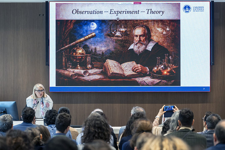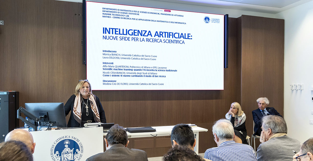 A offrire alcune direttrici su come l’IA stia diventando progressivamente parte integrante del processo scientifico sono stati due illustri studiosi, il matematico Alfio Maria Quarteroni, emerito al Politecnico di Milano e già docente nel campus bresciano della Cattolica, e l’informatico Nicolò Cesa‑Bianchi, ordinario all’Università degli Studi di Milano. Entrambi concordi nel sostenere che l’intelligenza artificiale stia aprendo nuove e sorprendenti possibilità nell’ambito della ricerca, nei loro interventi ne hanno però evidenziato due prospettive diverse. Il primo introducendo il nuovo concetto dello Scientific Machine Learning, un sistema che integra dati e modelli matematici fondati sulle leggi fisiche per migliorare l’affidabilità e le prestazioni degli algoritmi di apprendimento automatico, il secondo mostrando in che modo i modelli linguistici di grandi dimensioni (LLM – Large Language Models) stiano incidendo sulla produttività e sulle pratiche di ricerca.