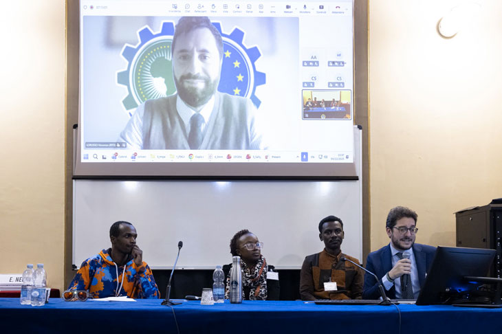 Nel keynote del pomeriggio, Vincenzo Lorusso, policy officer della Commissione Europea, ha presentato le opportunità offerte dalla Agenda sulla Ricerca e l’Innovazione elaborata congiuntamente da Unione Africana e Unione Europea per i prossimi 10 anni. Lorusso ha ricordato come questa agenda, implementata nel febbraio 2022 e adottata ufficialmente il 19 luglio 2023, rappresenti una visione condivisa che ha l’obiettivo entro il 2030 di costruire un ecosistema tra Europa e Africa fondato su know-how, scambio di conoscenze e trasferimento tecnologico.