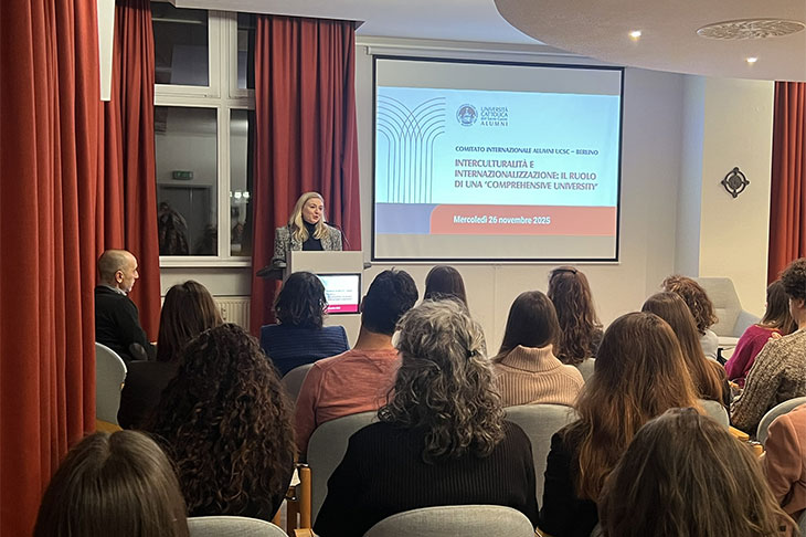 A Berlino il terzo dei tre incontri all’estero per presentare a laureate e laureati i principi guida della vision del nuovo Piano Strategico 2026-2028 dell’Università Cattolica, in occasione del primo anno di attività del Comitato Internazionale Alumni UCSC - Berlino.