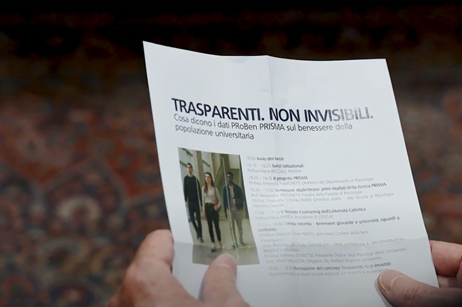 Last but not least, sono stati premiati i vincitori del concorso video “Trasparenti. Non invisibili”, realizzati dagli studenti. Prodotti multimediali in perfetta sintonia con gli esiti del questionario, che raccontano con efficacia le difficoltà della vita universitaria e, insieme, il valore insostituibile delle amicizie e della solidarietà tra pari, offrendo un’importante occasione di riflessione sulle luci e le ombre dell’esperienza accademica. Una testimonianza visiva che conferma ciò che emerge anche dai dati: il bisogno di appartenenza e sostegno rappresenta una delle aree più delicate, ma anche una delle più trasformative dell’esperienza universitaria.
