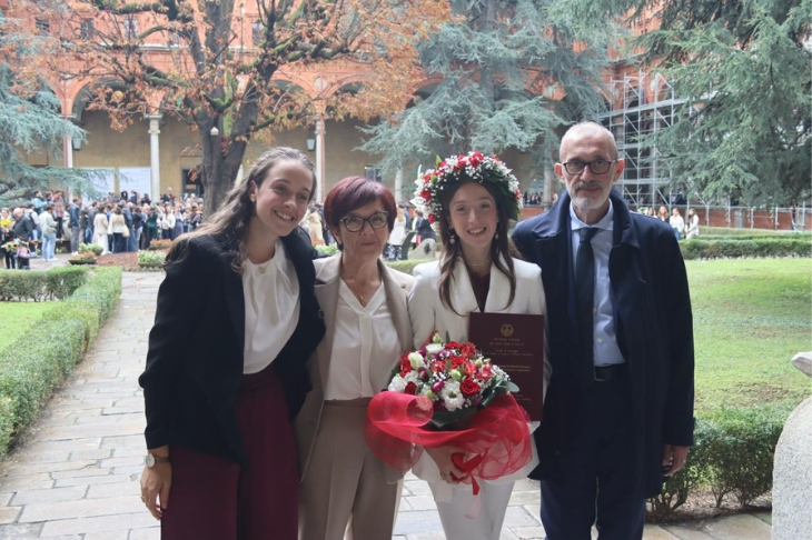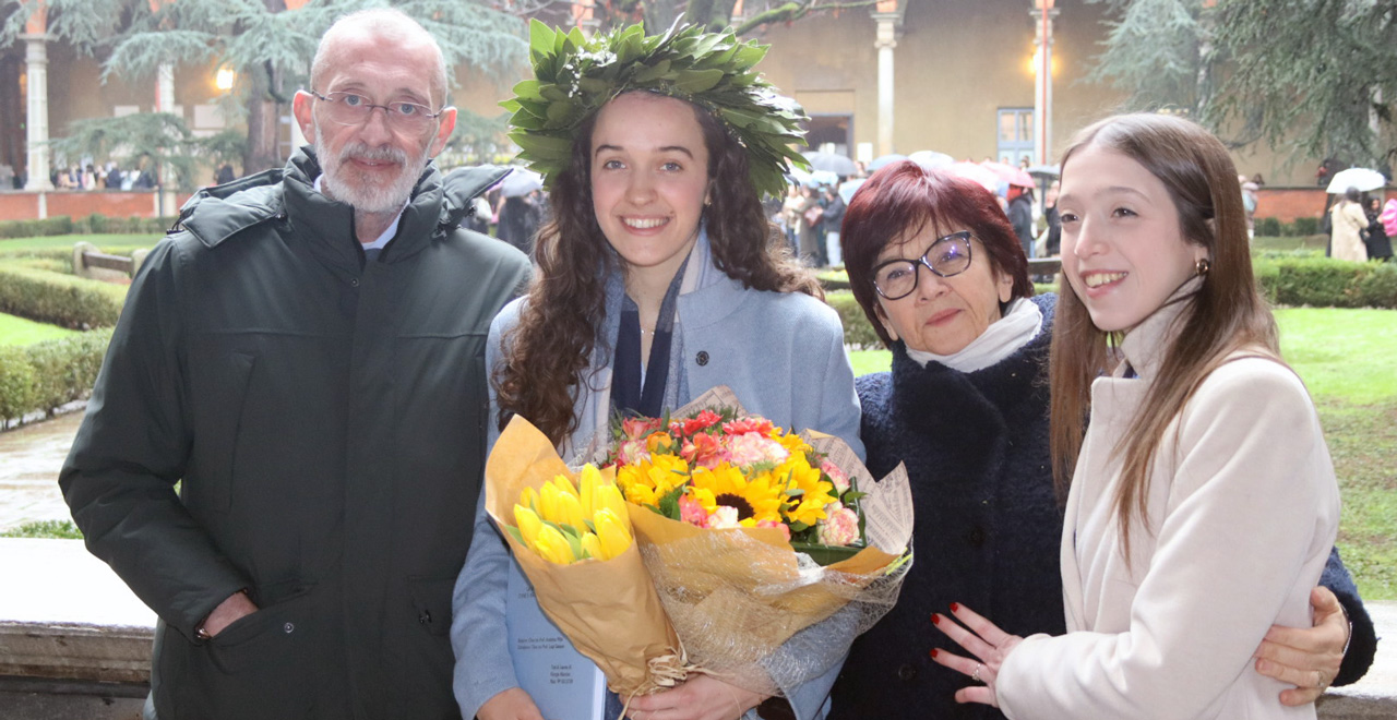 Ugualmente - anche per la neodottoressa Giorgia - i suoi anni universitari hanno rappresentato un’opportunità di crescita e incontro, oltre che di acquisizione di conoscenze e competenze, all’interno di una comunità di persone e valori condivisi: «della mia esperienza di studio in Cattolica porto con me sicuramente le persone che ho incontrato, i compagni di corso con cui ho condiviso lezioni ed esami e quelli degli anni più avanti, che sono stati punti di riferimento, ogni volta che avevo qualche dubbio o incertezza. Mi porto sicuramente la scoperta di un mondo nuovo, quello della classicità, che ho potuto esplorare e approfondire, grazie ai numerosi corsi frequentati e gli eventi culturali seguiti. Mi porto dietro la bellezza dei chiostri, dei cortili, delle biblioteche che ha contribuito a rendere più piacevole lo studio e le lunghe ore passate in Università».