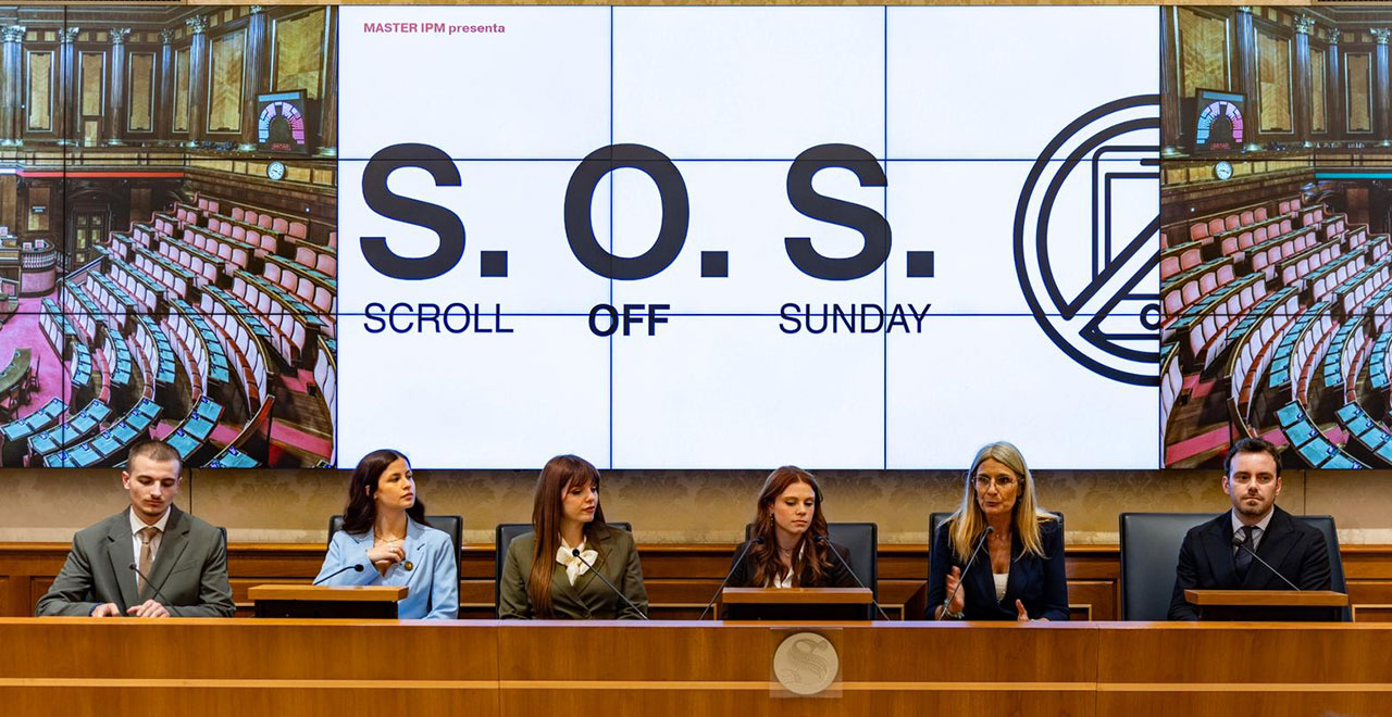 SOS – Scroll Off Sunday è un’iniziativa promossa dagli studenti del Master IPM – Ideazione e produzione audiovisiva, cinematografica e per i media digitali, guidati dal docente Danilo Leone. Diciotto giovani tra i 21 e i 30 anni, futuri professionisti dell’industria dei contenuti, si sono interrogati in modo critico sull’ecosistema digitale che contribuiscono a costruire.