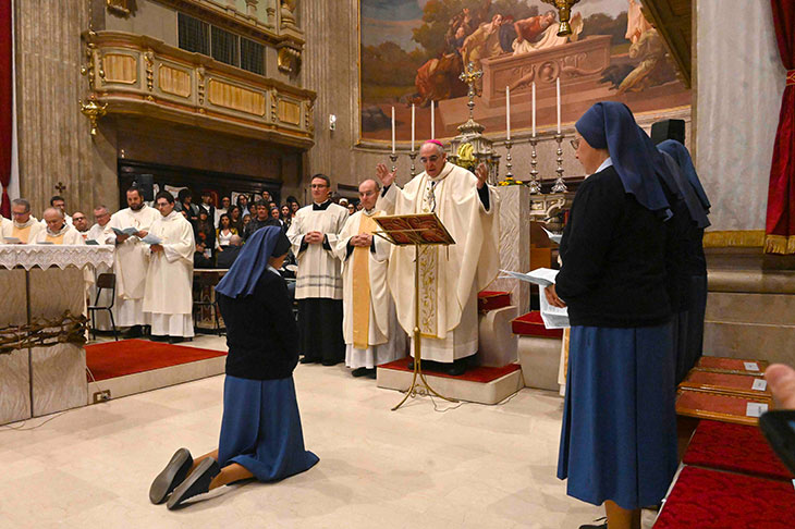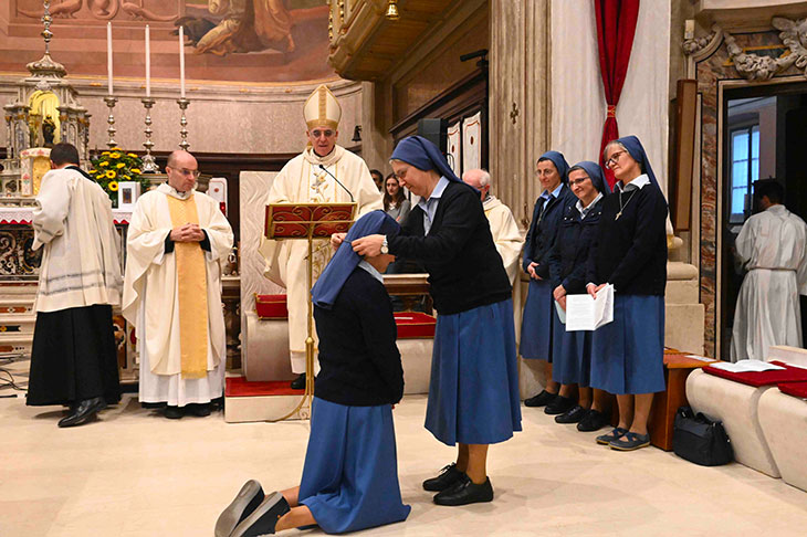 «È bello, insieme con i sacerdoti, sperimentare di essere Chiesa, lasciandoci interrogare dalle nuove sfide, che, come donne consacrate, siamo anche noi chiamate a vivere. La professione perpetua non è la fine di un cammino: sono sicura che ci sono tanti tratti del volto del Signore ancora da scoprire e tante sorprese della creatività dello Spirito ancora da sperimentare! Sant’Arcangelo Tadini, il nostro fondatore, amava dire: Coraggio! Un’occhiata al cielo e avanti!».
