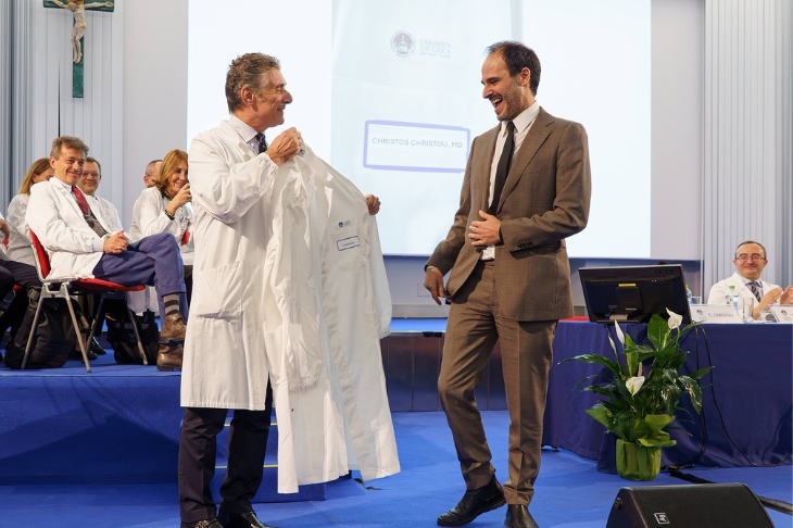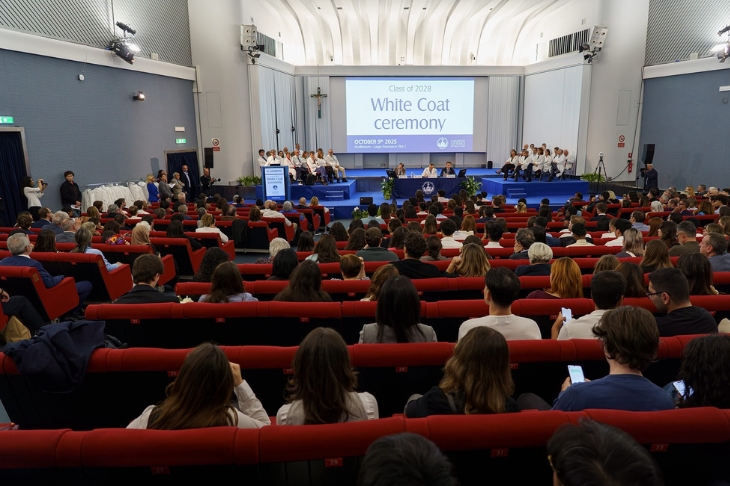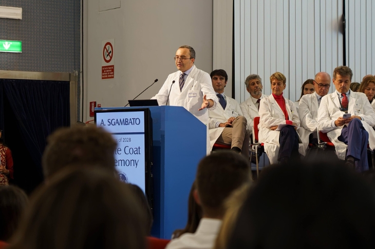 La Coating ceremony, la solenne cerimonia di vestizione degli studenti con la simbolica consegna del camice da parte dei docenti del Corso, è stata introdotta dalle parole del professor Giovanni Gambassi, presidente del corso di laurea in Medicine and Surgery: «Da questo momento in avanti, studiare Medicina non sarà più solo incamerare conoscenze, e per diventare veri medici non basteranno solo buoni voti. D’ora in poi si tratta di lavorare per uno scopo più grande: i vostri camici bianchi rappresentano un simbolo della fiducia che i pazienti ripongono in voi ogni giorno».