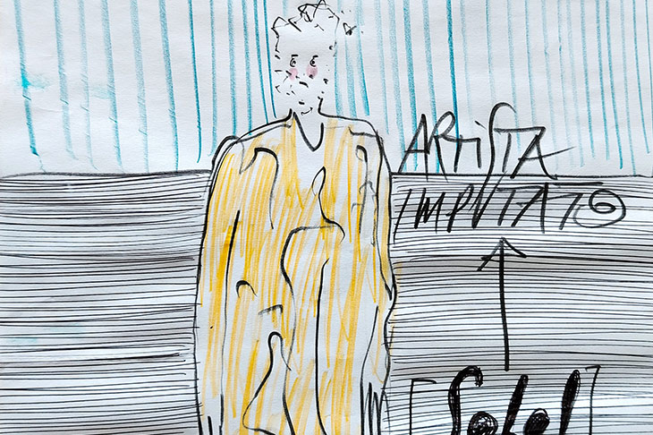 A chiudere il processo è stato lo storico dell’arte Paolo Bolpagni che, nella veste di pubblico ministero, con una argomentata e simbolica requisitoria, ha condannato l’imputato Giorgio Vicentini a fare arte ogni giorno e secondo la sua vocazione esistenziale. Una sentenza che, più come condanna, suona come un invito all’artista di proseguire nella sua missione: quella cioè, usando le parole di Tedeschi, di continuare «a muoversi tra tutte le forme dell’agire individuale e collettivo, dalla galleria d’arte all’aula universitaria, dalla strada di una città alla cima di una montagna, dall’argine di un fiume alla stanza di un ospedale, dalle pareti di un museo allo schermo di un dispositivo elettronico». Perché, se l’arte è davvero colpevole, lo è solo se smette di interrogare il mondo.