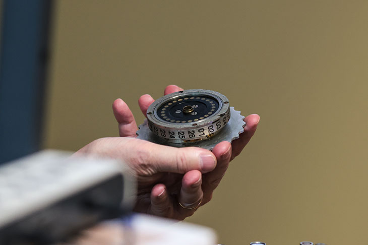 «Siamo arrivate alla soluzione "centauro" cercando di decifrare il messaggio in diversi modi, con le tecniche di crittografia basiche, il cifrario di Cesare, osservare le caratteristiche del testo, le colonne i numeri e quante volte si ripeteva ogni lettera. Leggendo i diversi seminari proposti durante la settimana della scienza, abbiamo notato che uno di essi riguardava la Macchina Enigma. Ipotizzando un collegamento con il messaggio abbiamo cercato le componenti e il modo in cui funziona, poi trovato la soluzione al post-it, ovvero il settaggio dei rotori».