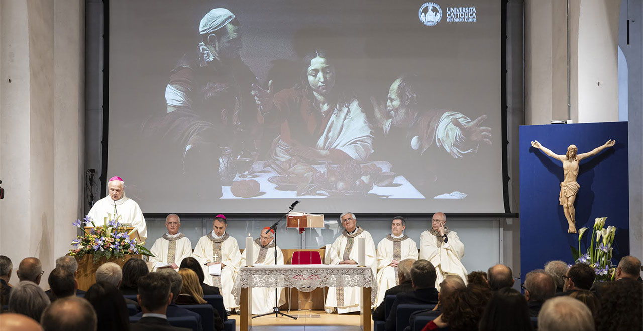 Nella colletta che ci ha introdotto alla Liturgia della Parola abbiamo chiesto il dono «di riconoscere il Cristo crocifisso e risorto che apre il nostro cuore all’intelligenza delle Scritture e si rivela a noi nello spezzare il pane». Mi sembrano due elementi che, alla luce delle letture che abbiamo ascoltato, ci offrono interessanti spunti per un approfondimento sapienziale del senso e del valore della Giornata per l’Università Cattolica del Sacro Cuore. È una Giornata che si celebra oggi in tutta Italia. Momento importante per sottolineare la rilevanza che ha l’Ateneo dei Cattolici Italiani nel tempo presente e non solo per la lunga e gloriosa tradizione avviata da P. Agostino Gemelli e dalla Beata Armida Barelli.