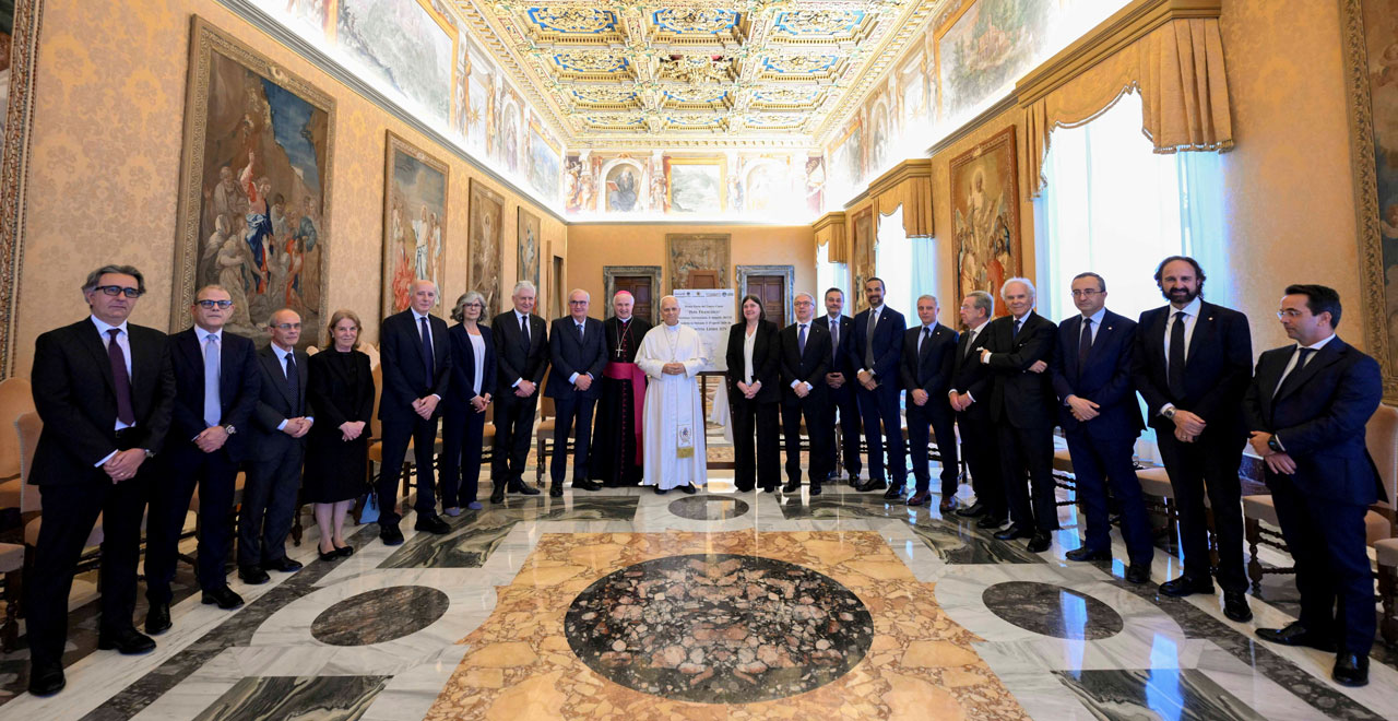 Nel corso dell’Udienza Leone XIV ha benedetto la prima pietra del “Centro CUORE – Papa Francesco”, che sarà realizzato entro tre anni. Hanno partecipato all’Udienza il Vicepresidente Giuseppe Fioroni e il Segretario Generale dell’Istituto Giuseppe Toniolo di Studi Superiori Enrico Fusi, il Presidente della Fondazione Roma Franco Parasassi con i membri del consiglio di amministrazione e una rappresentanza di dirigenti, docenti, medici cardiologi e personale sanitario di Università Cattolica e Policlinico Gemelli, tra cui il Direttore Generale Daniele Piacentini, il Direttore Scientifico Antonio Gasbarrini, e il Preside della Facoltà di Medicina e Chirurgia Alessandro Sgambato.