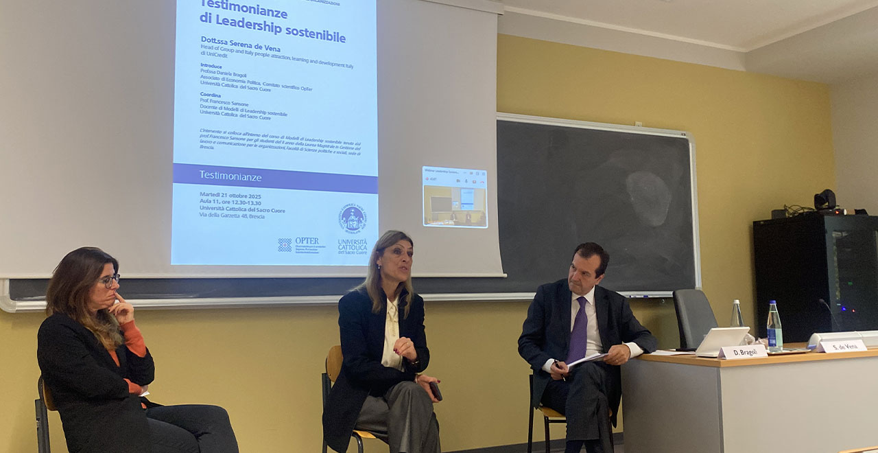 È la storia di un processo di trasformazione sostenibile di un'azienda. Comincia nel 2021 con l'arrivo in Unicredit dell’attuale amministratore delegato Andrea Orcel. Una parabola che ha introdotto un cambiamento organizzativo capace di toccare tutti e 27mila i dipendenti del secondo gruppo bancario italiano. La racconta, nella sede di Brescia dell’Università Cattolica il 21 ottobre, Serena De Vena, Head of Group and Italy People attraction, learning and development di Unicredit, il cui intervento, dopo il saluto della professoressa Daniela Bragoli, apre il ciclo “Testimonianze di leadership sostenibile”, promosso, insieme con Opter, all’interno del corso di Modelli di leadership sostenibile tenuto dal professor Francesco Sansone.