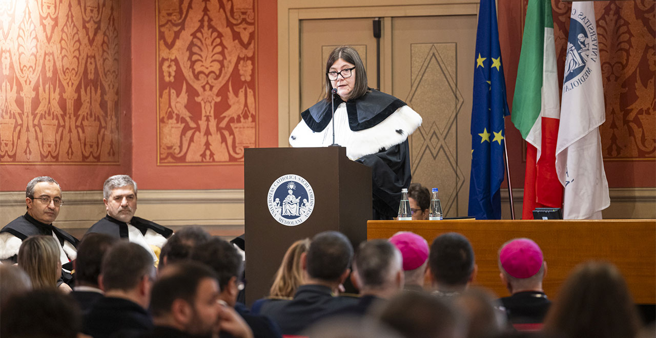 Desidero salutare le pregiatissime autorità civili, accademiche e militari. In particolare, rivolgo un saluto al Prefetto di Brescia, Andrea Polichetti, e al Rettore dell’Università degli studi di Brescia, professor Francesco Castelli. Saluto e ringrazio in maniera davvero speciale la Sindaca di Brescia, Laura Castelletti, l’Assessore all’Istruzione, formazione e lavoro di Regione Lombardia, Simona Tironi, e il Presidente di EBIS, Alessandro Azzi, che a breve saremo lieti di ascoltare. La vostra presenza è testimonianza di relazioni autentiche e di lavoro sinergico. È proprio attraverso la solida collaborazione con le istituzioni locali che l’Università Cattolica del Sacro Cuore offre un contributo incisivo allo sviluppo di questa città universitaria: una Brescia capace di valorizzare il sapere, attrarre i giovani, trattenere i talenti e generare impatto a beneficio della società civile.
