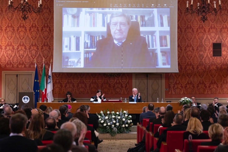 Tornando al filo narrativo di questo anno accademico, il Rettore ha fatto notare che alla base dell’alleanza tra generazioni, «necessario e imprescindibile pilastro per assicurare la coesione sociale e lo sviluppo del nostro paese», c’è la «giustizia intergenerazionale». Questa, ha affermato il Rettore Beccalli, «si fonda su principi iscritti nella nostra Carta costituzionale, sulla promozione di politiche di ampio respiro per il bene comune, su una reale sostenibilità sociale ed economica. Il campus di Brescia dell’Università Cattolica del Sacro Cuore può continuare a offrire un contributo essenziale per rendere concreto tale disegno. Per farlo, la sua dimensione glocal dovrà essere rafforzata e tenuta al passo con i tempi».