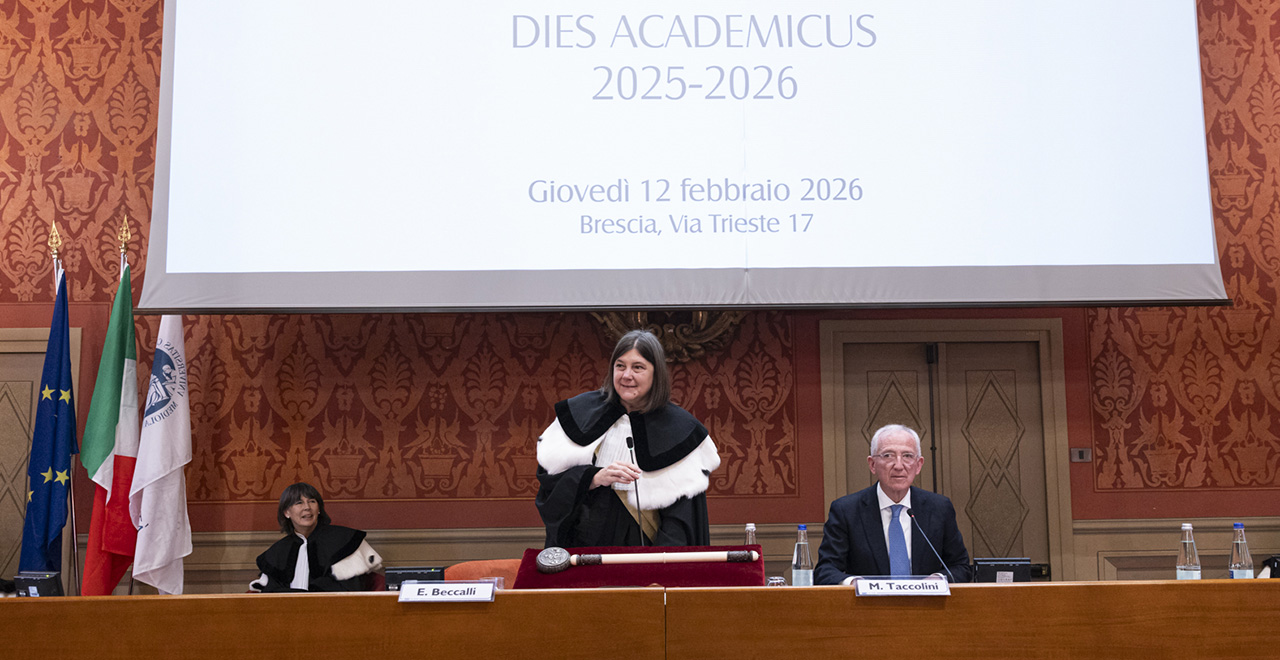Un intervento che, prima di dedicarsi al tema che fa da fil rouge a tutti i Dies dell’anno accademico in corso, ha messo in luce le novità e i punti di forza della sede bresciana. A cominciare dai nuovi profili: “Educatore nei servizi educativi per l’infanzia” ed “Educatore professionale socio‑pedagogico” nella laurea triennale di Scienze dell’educazione e della formazione; “Climate change and management of environmental risk” nella laurea magistrale in Physics e “Abitiamo lo Sport: l’intervento dello psicologo” nella laurea magistrale Psicologia degli interventi clinici: gruppi, organizzazioni, comunità. «Tutti percorsi ideati per rispondere alle richieste emergenti del mondo del lavoro, per fornire competenze innovative e per favorire una formazione qualificata e di frontiera» ha affermato il Rettore.