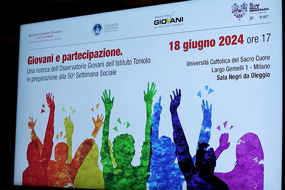 Di ampio respiro le conclusioni del cardinal Matteo Zuppi, arcivescovo di Bologna e presidente CEI, che ha recepito i dati della ricerca e la loro interpretazione collocandoli nella preparazione e nelle tematiche che saranno discusse nella Settimana sociale di Trieste e invitando ad esaminarli non con l’atteggiamento con cui ci si pone verso gli oroscopi, ma come guardando uno specchio che ci fa vedere chi siamo. «Il lavoro dall’Osservatorio dell’Istituto Toniolo e dall’Università Cattolica è importante: l’Università si rivela una risorsa importantissima nello scegliere, capire, indirizzare. Aiutati da voi vivremo l’appuntamento di Triste parlando dei problemi, entrando nelle contraddizioni, indicando soluzioni». Circa i dati ha affermato: «Alcuni sono preoccupanti, altri ci mettono di fronte alla responsabilità sul futuro dei giovani, sull’impegno nel volontariato, nel contesto del discorso sull’Europa che è il nostro giardino. Le Settimane sociali, quindi, devono avere una visione europea e rispondere al vero desiderio della Chiesa che non smette di sognare, con gli occhi aperti e di giorno, secondo l’espressione di Papa Francesco».