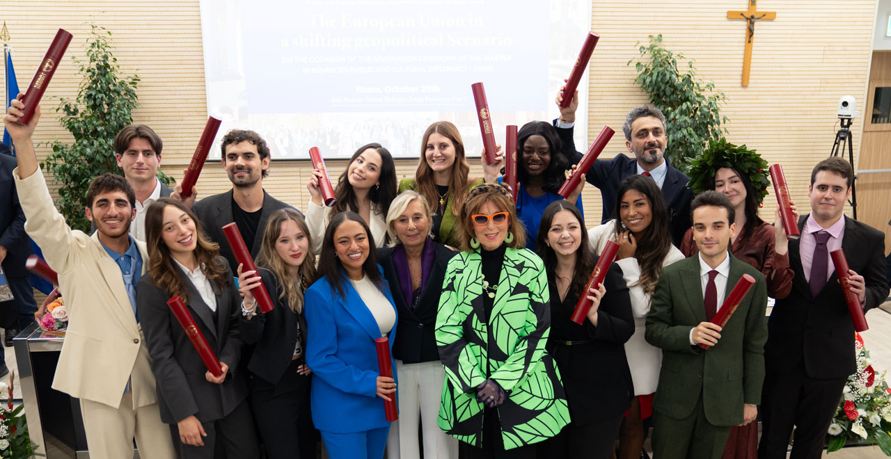 A coronamento dell’evento la Graduation ceremony: «Questi giovani provenienti da tutto il mondo, anche da Paesi in transizione democratica e da regimi non democratici – ha detto la Professoressa Olivares introducendo la cerimonia -, hanno scelto l'Italia perché parte dell'Europa dove imparare come la cultura possa essere al centro della politica estera se si fonda sul principio dello Stato di diritto come potente stabilizzatore delle relazioni internazionali».