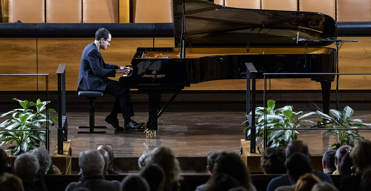 Cercare la risposta che la musica può dare agli eventi politici in corso è una delle ragioni alla base della scelta del programma proposto dal Maestro Luca Buratto giovedì 13 novembre a conclusione della quarta edizione del Pianoforte in Ateneo nell’Aula Magna dell’Università Cattolica, ancora una volta gremita e appassionata. Una risposta, ad esempio, alle grandi guerre, come nel caso de La Valse di Ravel che sembra quasi una deflagrazione della civiltà occidentale attraverso la forma del Walzer, brano che ha chiuso la serata raccogliendo i calorosi applausi del pubblico. Il secondo fil rouge sotteso al programma impegnativo e coinvolgente della serata è la danza: quella delle Davidsbündlertänze di Schumann, ma anche degli ultimi Studi di Debussy, opere enigmatiche, frizzanti e piene di vita.