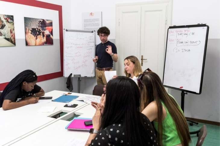 Per Serena Porfirio, volontaria presso il Corso di italiano per adulti migranti, Parrocchia del Carmine, la formazione è uno degli aspetti più importanti dell’esperienza: «non si tratta solo di preparazione tecnica, ma di veri momenti di confronto in cui ci si ferma a riflettere sul senso profondo di ciò che stiamo facendo. Attraverso attività e discussioni si parla di dialogo, di accogliere il prossimo e di come mettersi davvero in ascolto dell’altro». La pensa così anche Francesca Bernardello, anche lei volontaria presso il Corso di italiano del Carmine: «i momenti di formazione sono uno spazio in cui sentirsi liberi, in cui esplorarsi, momenti preziosi sia per il percorso di volontariato sia per la nostra vita».