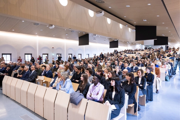 What emerged was a spirited account by Linus, who wittily described himself as “the Rector of Radio Deejay”. The conversation gave a real sense of the collaborative effort and the distinct feeling that something new was taking shape, as Jolie remarked, pleasantly surprised to see students on stage, or as Professor Lanz pointed out (“in all my years, I’ve never seen anything like this”). The most difficult part comes now, as explained by Maddalena Baitieri, who from tomorrow will be dealing with the challenge of ‘inventing a source of funding for young researchers’. Representing the internationalisation process and the implementation of the Africa Plan was 25-year-old Richard from South Sudan, who arrived at Università Cattolica thanks to the Unicore project, University Corridors for Refugees, coordinated by UNHCR. “Inclusivity at Università Cattolica is palpable. But I know I need to become more fluent in the language of the country that has welcomed me in order to keep on improving my knowledge of banking subjects and perhaps, who knows, make them available in the future to the part of the world I come from to help others.”
