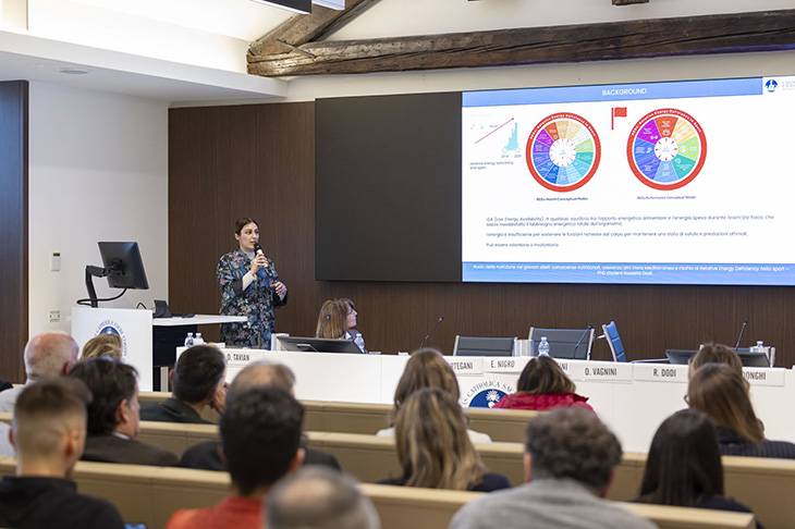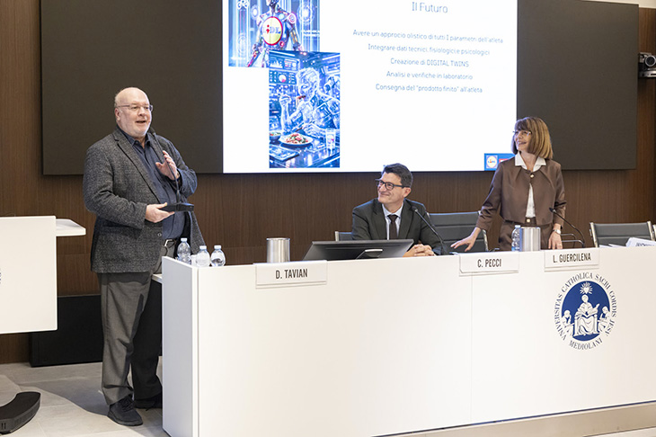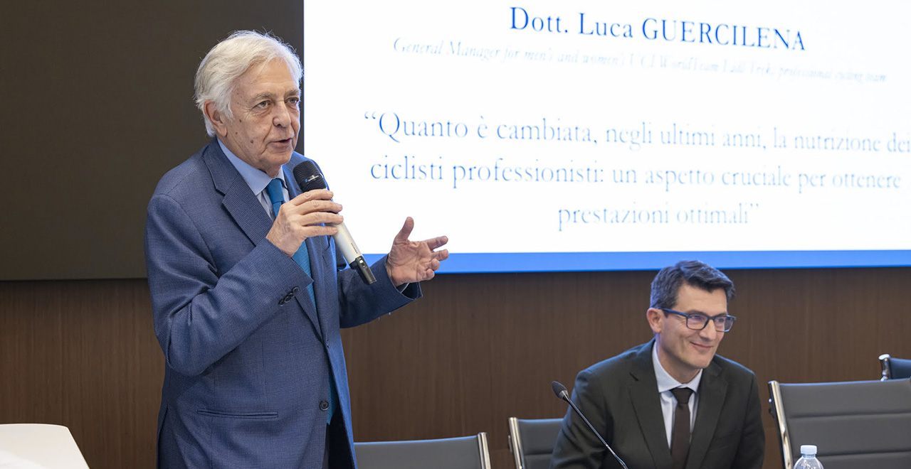 L’ultima sessione è stata introdotta da Paola Vago, docente di Teoria e metodologia del movimento umano e coordinatrice didattica del master Specialista della formazione fisica per i settori giovanili nel calcio, e conclusa con i saluti di Mario Gatti, direttore dell'Area Ricerca e Sviluppo dell'Università Cattolica, che ha auspicato «una vivace e concreta interazione» e «un'efficace permeabilità tra università, studenti e professionisti dello sport», tenendo presente che «l'attività sportiva dà spunti fondamentali alla ricerca». Protagonisti sono stati Claudio Pecci, amministratore delegato del Centro Ricerche Mapei Sport, e Luca Guercilena, General manager for men’s and women’s UCI WorldTeam Lidl-Trek, sul tema del cambiamento della nutrizione dei ciclisti professionisti. Un aspetto cruciale per ottenere prestazioni sportive ottimali.
