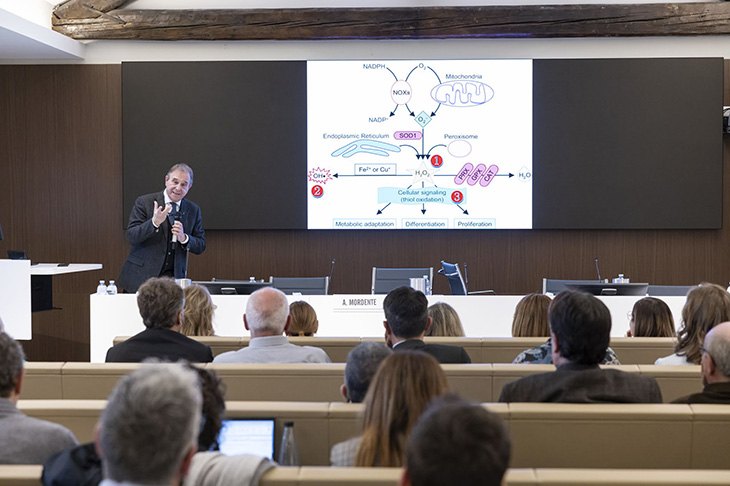 A seguire, è stato il momento della key lecture di Alvaro Mordente, già direttore del Cribens, dal titolo “La Biochimica dell’esercizio fisico: dall’evoluzione del genere umano alle medaglie olimpiche, alla prevenzione delle malattie”. «Lo studio della Biochimica dell’esercizio fisico ci permette di ampliare enormemente le nostre conoscenze sulla regolazione metabolica locale e sistemica» ha detto il professor Mordente. «Ma anche sulle risposte adattative muscolari e di altri tessuti, e sui meccanismi cellulari e molecolari che sono alla base di almeno tre grandi aree di ricerca: l’evoluzione del genere umano, la prestazione atletica e la prevenzione delle malattie».
