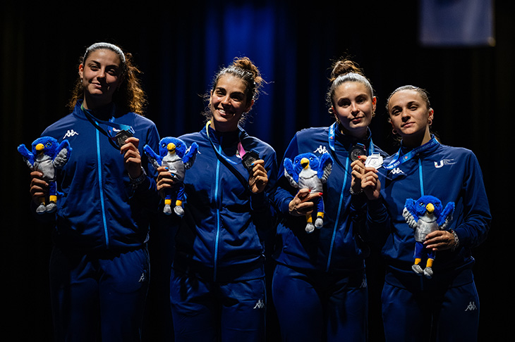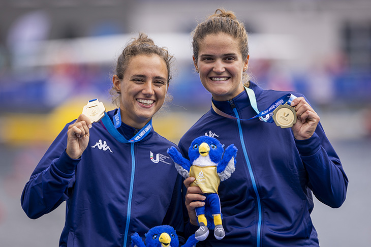 Due volte campionessa del mondo U23 nel doppio pesi leggeri, oro europeo nel 2023 e cinque volte campionessa italiana di categoria, Sali impreziosisce ulteriormente il suo palmarès con il titolo universitario, dopo l’argento nel singolo ottenuto a Chengdu, in Cina, due anni fa. Chi invece era alla sua prima Universiade, è Carlotta Ferrari, la fiorettista comasca che, da rookie, ha saputo conquistare ben due medaglie. Quella di bronzo, nella gara individuale, e l’argento a squadre, sotto gli occhi attenti di Diana Bianchedi, oro nel fioretto a squadre alle Olimpiadi di Barcellona e di Sydney, cinque volte campionessa del mondo nella stessa disciplina, oggi Chief of Strategic, planning and legacy di Fondazione Milano Cortina 2026. «È stata un’esperienza unica, si respirava un clima diverso, speciale» racconta la studentessa di Scienze e tecniche psicologiche, campus di Milano. «La cerimonia di apertura mi ha lasciato senza parole, mi sono sentita piccola piccola davanti allo stadio pieno di gente. Non oso immaginare come ci si possa sentire alle Olimpiadi».
