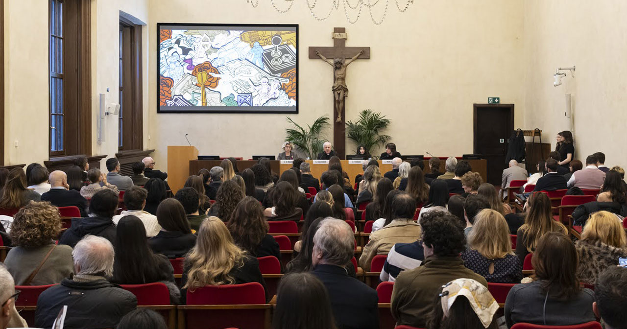 Il tema scelto quest’anno riguarda le conseguenze della guerra e l’idea è nata pensando soprattutto al conflitto russo-ucraino e israelo-palestinese. «Non immaginavamo di trovarci di fronte alle ulteriori macerie del Golfo – ha detto monsignor Claudio Giuliodori, assistente ecclesiastico generale dell’Ateneo, intervento all’inaugurazione –. Non è facile comprendere cosa genera la guerra nell’animo umano. Gli artisti ci prendono per mano nel tentativo di leggere l’abisso di dolore e di andare oltre l’impatto devastante delle macerie per cogliere i germogli della speranza».