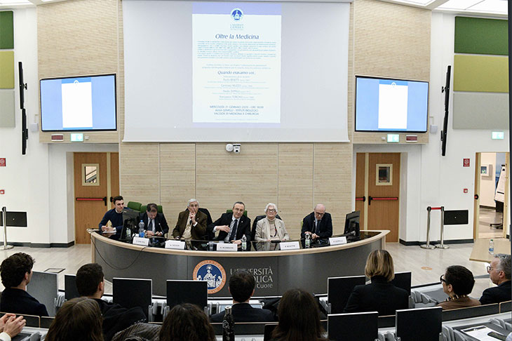Tanti i ricordi e gli aneddoti personali che i relatori hanno condiviso con i giovani studenti, dai viaggi di ritorno ai luoghi degli affetti e di famiglia, alle ore creative in mezzo a lunghe giornate di studio e lavoro fino all’impegno sociopolitico e scientifico dell’età adulta i cui semi sono stati piantati negli anni della giovinezza: «Passione: questa la parola chiave dell’incontro ed è questa la stessa emozione che porta quattro illustri medici del panorama nazionale a confrontarsi con noi studenti – ha commentato lo studente del corso di laurea in Medicina e chirurgia Pietro Schirano -. Dalle “fughe” a Bologna del professor Nuzzo, alle poesie del professor Zeppilli passando per le conquiste politiche della professoressa Binetti fino ad arrivare “in orbita” con il dottor Torchia. Due ore confrontando le varie esperienze universitarie evidenziando l’importanza degli incontri con colleghi diventati, col tempo, amici fedeli e maestri che, con i loro consigli, hanno illuminato il proprio percorso. Due ore di puro amore, nel raccontare quello che è il lavoro più bello del mondo, dove le soddisfazioni hanno più forme, passando dal sorriso sul volto di un paziente alla curiosità di uno studente durante le lezioni. Per chi espone le proprie preoccupazioni e parla di “tunnel senza luce” il professor Zeppilli ha tenuto a precisare, con l’ironia che lo contraddistingue, che “nel tunnel c’è sempre l’uscita, anche nel traforo del Monte Bianco (la galleria più lunga d’Italia)”. In conclusione, quello che mi porto dentro da questo incontro è che qualsiasi cosa si faccia nella vita gli ingredienti per ottenere risultati sono passione, curiosità e ascolto. Ringrazio i rappresentanti degli studenti e l’Università per questa preziosa opportunità».
