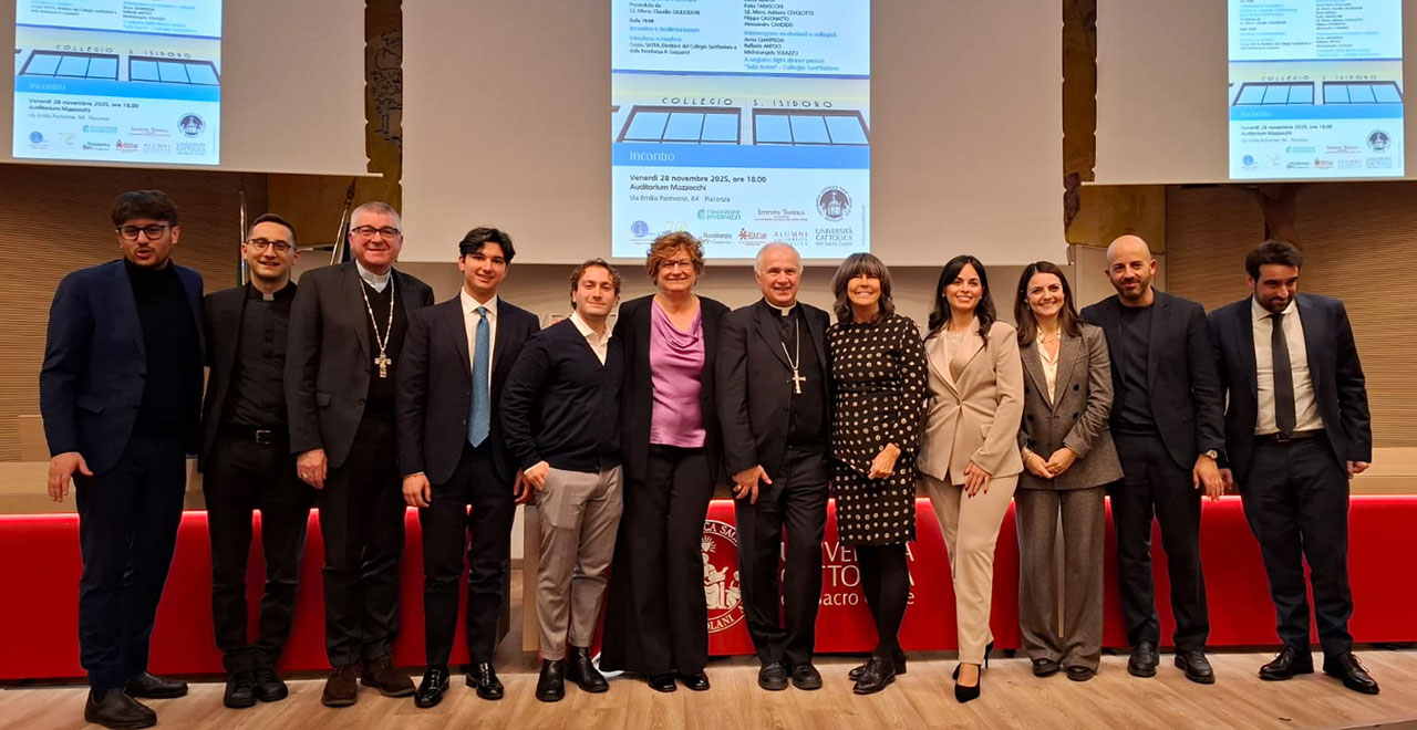Il Collegio Sant’Isidoro ha compiuto settant’anni. Una storia iniziata quando, nel novembre del 1955 due anni dopo l’avvio a Piacenza di un’Università Cattolica a indirizzo agrario, padre Agostino Gemelli volle fortemente l’apertura di un collegio per studenti. Questa lunga storia, fatta non solo di muri ma soprattutto di legami tra le persone, è stata celebrata nella sede piacentina dell'Ateneo, durante una serata scandita da diversi momenti. Alla messa, celebrata nella cappella universitaria del campus, è seguito l’incontro in auditorium Mazzocchi, con i contributi di diverse voci. Al centro la storia di un’istituzione, il Collegio Sant’Isidoro a cui nel corso del tempo si è aggiunta anche la residenza femminile Gasparini, «intesa come comunità – ha sottolineato monsignor Claudio Giuliodori, Assistente ecclesiastico generale di Ateneo - dove si impara a conoscere se stessi e la propria unicità, dove si impara cosa voglia dire portare frutto nel mondo».