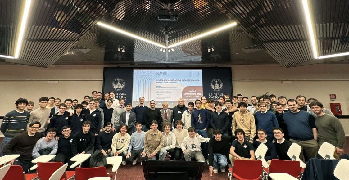 Un clima di attesa e di fervente curiosità ha riempito la Sala Italia nel campus di Roma dell'Università Cattolica del Sacro Cuore lo scorso 18 novembre. La data segna l’avvio di un’iniziativa nuova, destinata a lasciare il segno nella formazione degli studenti del Collegio maschile Nuovo Joanneum: il progetto di Mentorship, ideato e promosso dall’Associazione degli ex collegiali “In Corde Joanneum” e pienamente accolto dalla direzione del Collegio.