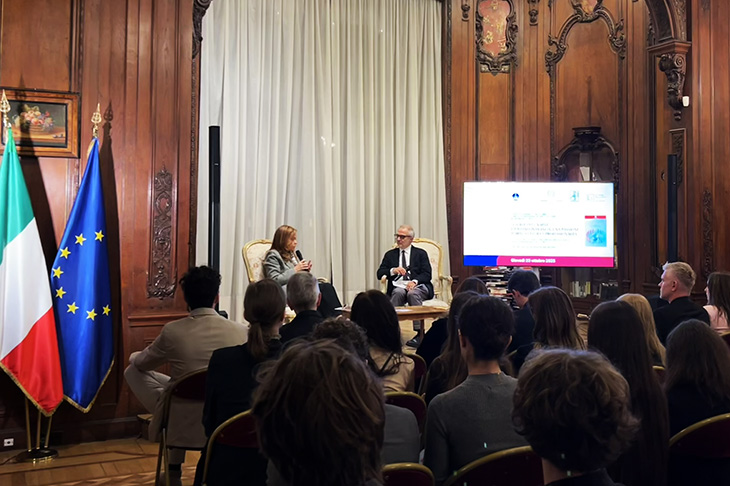 L’Italia è un sogno che ritorna incessantemente, ricordava la poetessa Anna Achmatova. «In Francia quel sogno è oggi pratica concreta: l’italiano è una lingua-ponte che connette eredità e futuro, identità e cooperazione» e, proprio per questo, «investire sull’italiano significa coltivare un bene comune europeo capace di generare conoscenza, cittadinanza culturale e sviluppo condiviso». A dirlo è Maria Teresa Zanola, docente di Linguistica francese e direttrice scientifica dell'Osservatorio di terminologie e politiche linguistiche – OTPL dell’Università Cattolica del Sacro Cuore, nella cornice del Consolato Generale d’Italia in Francia. Dove la community Alumni dell’Università Cattolica del Sacro Cuore, in collaborazione con il Consolato Generale stesso e con l’Accademia della Crusca, di cui la professoressa Zanola è accademica corrispondente, ha promosso giovedì 23 ottobre un incontro dedicato al ruolo della lingua italiana come strumento di dialogo interculturale, creativo e professionale tra Italia e Francia.