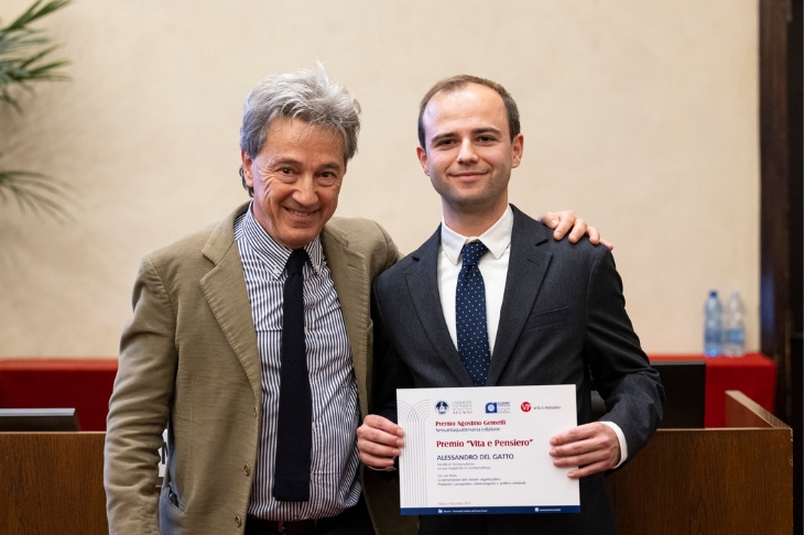 Il conferimento di questo Premio rappresenta «la più importante tra le tante iniziative degli Alumni, rinnovando la tradizione di merito e impegno dimostrato dai migliori laureati». Così si è espresso Andrea Patanè, presidente Alumni Cattolica Associazione Necchi, per poi ribadire il senso dell’Associazione consistente nel tenere vivo il contatto dei laureati tra loro e con l’Ateneo: «Il senso della Necchi - se vuole essere formativa e durevole – sta nell’alimentarsi alle sue stesse fonti, nel tramettere l’ideale cristiano e umanistico che si è vissuto in Università».