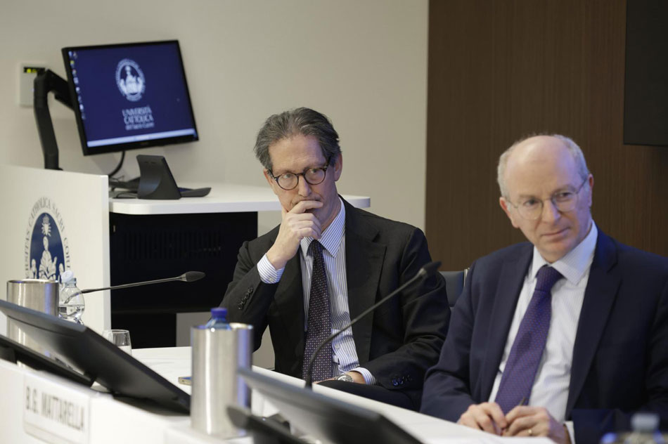 Al dibattito è intervenuto anche Marco Lossani, professore di Economia politica in Università Cattolica. Nel suo intervento ha messo in evidenza come «le fragilità derivano da rischi che cambiano rapidamente e da sistemi sempre più complessi e interconnessi». In un contesto simile, ha continuato, basta quello che è definito “butterfly effect” per generare conseguenze rilevanti. Per questo è necessaria una «cabina di regia» capace di coordinare e governare la complessità. In Italia, non abbiamo ancora sviluppato istituzioni adeguate né una forza lavoro sufficientemente formata. A ciò si aggiunge il problema della finanza pubblica e la mancanza di una strategia di sicurezza nazionale. Ecco perché il fattore tempo della politica diventa decisivo.