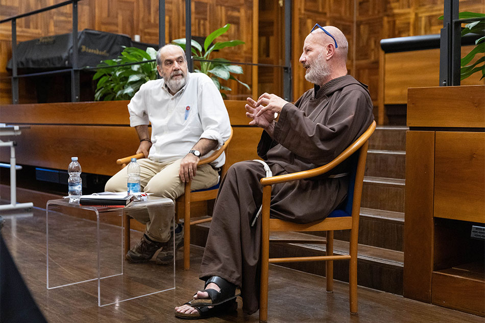 Una conversazione, densa di spunti e di riflessioni, che ha avuto il merito di mettere in evidenza quanto la teatralità sia un tratto specifico dell’opera di Francesco. Lo ha spiegato bene padre Renato Delbono, del Centro Pastorale dell’Ateneo, introducendo la conversazione tra padre Finco e il professor Maggioni: per lui «mettere in scena» è uno strumento per «comunicare ciò che si ha nel cuore», rispondendo al bisogno profondo di narrare il proprio vissuto.