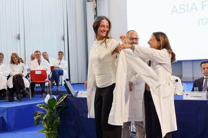 La cerimonia – che rappresenta in Italia un rito di passaggio tra la fine del terzo e l'inizio del quarto anno di corso con il quale, attraverso la vestizione del camice bianco, i futuri medici entrano nella fase degli studi clinici  – si è aperta con i saluti istituzionali del professor Alessandro Sgambato, preside della Facoltà di Medicina e chirurgia dell’Università Cattolica: «Questa cerimonia sottolinea l'importanza per gli studenti di Medicina di impegnarsi a rispettare i valori che devono caratterizzare la loro attività professionale, fin dall'inizio della loro presenza nei reparti ospedalieri: il camice bianco è simbolo dell'impegno ad apprendere come curare al meglio chi ha bisogno di aiuto, a contribuire al mantenimento della salute dei pazienti e a condividere le conoscenze professionali con i colleghi. Nella Facoltà di Medicina dell'Università Cattolica uniamo l'eccellenza nell'assistenza sanitaria e nel servizio clinico con il prendersi cura dei pazienti con compassione e umanità: lasciate che questi valori guidino sempre la vostra vita e la vostra professione e sono certo che raggiungerete un grande successo come professionisti e come persone».