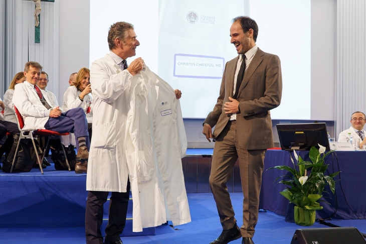 La Coating ceremony, la solenne cerimonia di vestizione degli studenti con la simbolica consegna del camice da parte dei docenti del Corso, è stata introdotta dalle parole del professor Giovanni Gambassi, presidente del corso di laurea in Medicine and Surgery: «Da questo momento in avanti, studiare Medicina non sarà più solo incamerare conoscenze, e per diventare veri medici non basteranno solo buoni voti. D’ora in poi si tratta di lavorare per uno scopo più grande: i vostri camici bianchi rappresentano un simbolo della fiducia che i pazienti ripongono in voi ogni giorno».