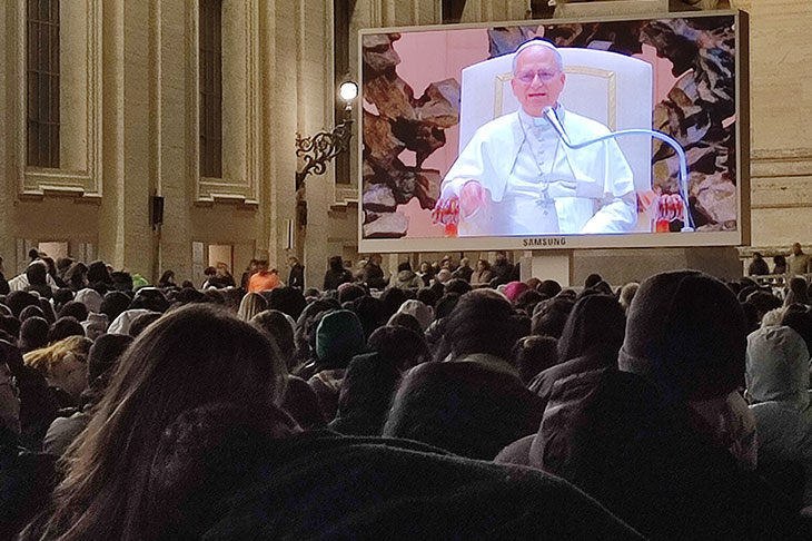 «Carissimi giovani, benvenuti! Saluto anche tutti quelli che sono fuori, al freddo, che stanno seguendo il nostro incontro con gli schemi in Piazza e fuori del Sant’Uffizio. Davvero, benvenuti tutti! Sono molto contento di trovarmi con voi, di avere questa opportunità di condividere un po’ questa ricerca, questo desiderio di rispondere non solo a quelle domande che abbiamo appena sentito, ma a tante cose nella vita»: queste le parole iniziali con cui Papa Leone XIV ha salutato le migliaia di giovani che sabato 10 gennaio hanno riempito l’Aula Paolo VI, mentre molto numerosi erano anche le ragazze e i ragazzi che lo ascoltavano nelle aree esterne, in occasione dell’Incontro con i Giovani della Diocesi di Roma.